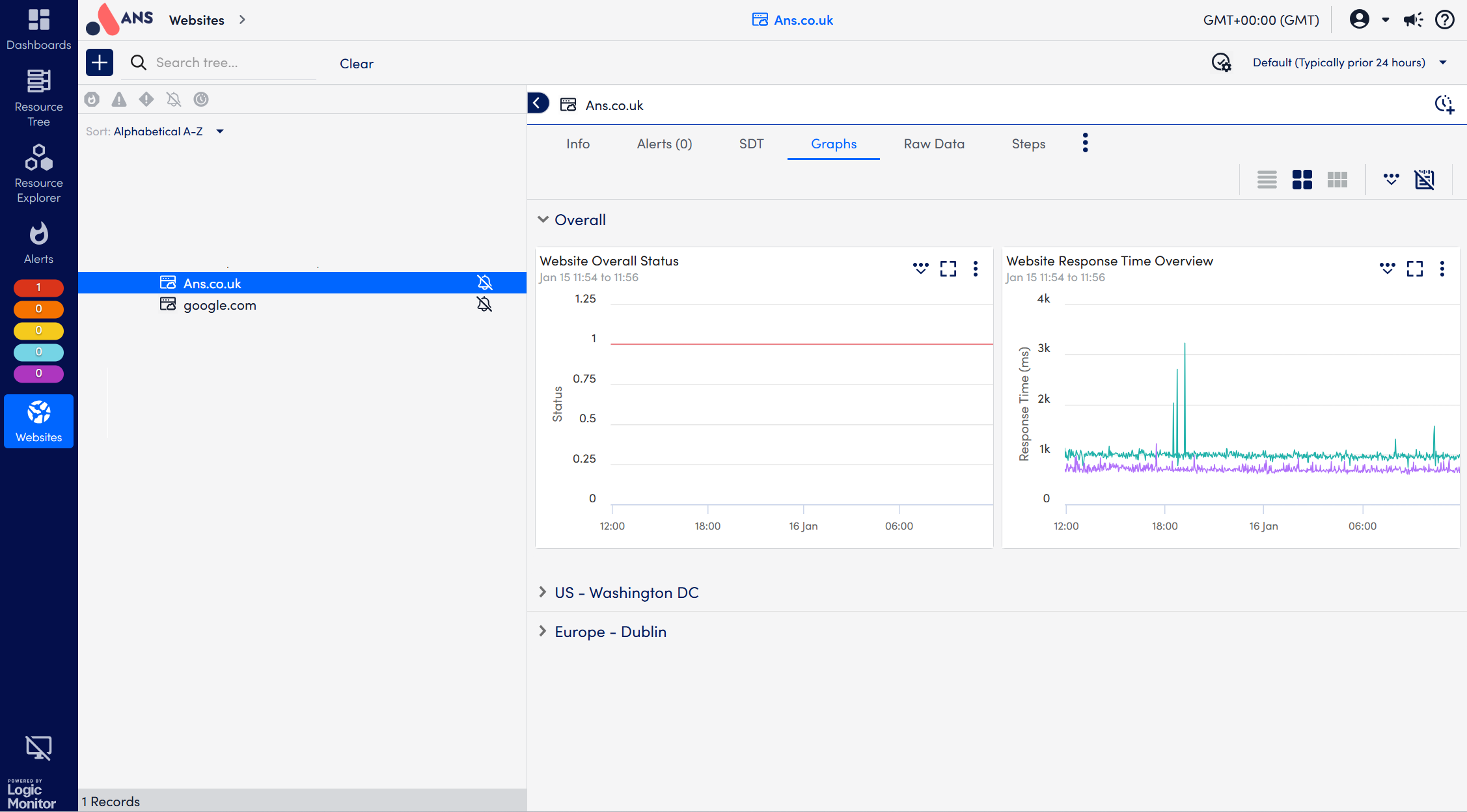 The Website Monitoring page is separate from the Resources page, as shown in the screenshot below.